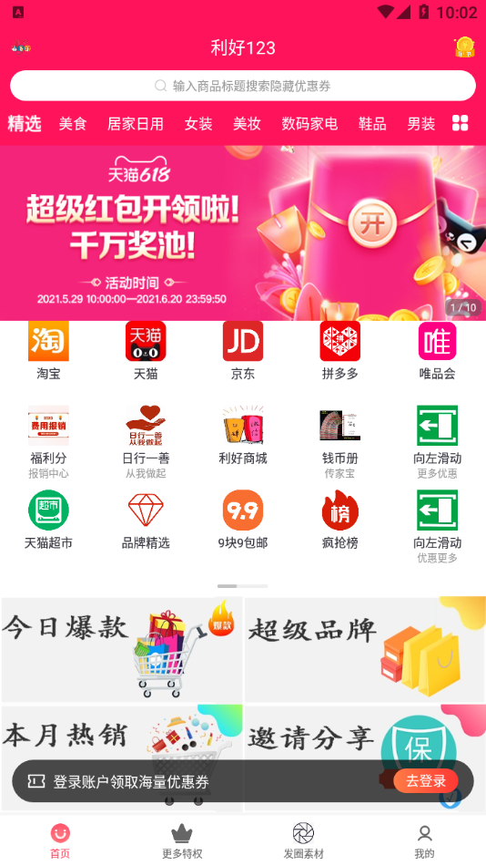 3、会员签到获赠抵现积分、一键分享好友领取购物卡,既省钱又赚钱。