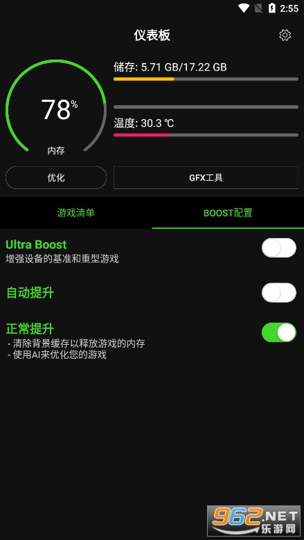 谷歌市场里最受欢迎的手机游戏加速器,如果你用的是配置的手机,可以显著提高手机游戏性能。软件是免费使用的,没有会员功能。