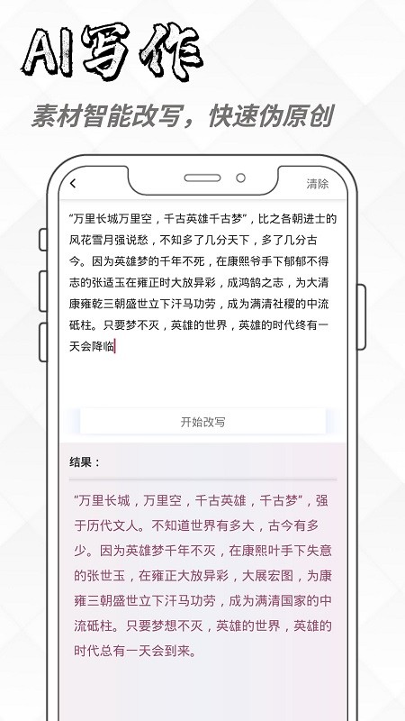 AI创作家app是一款基于ai写作的生成器助手,可以广泛应用于文章、作文、小说、诗歌等文本创作场景,其核心功能包括主题生成、关键词提取、句子组合、文章扩展等,通过输入关键词或主题,软件能够自动生成符合要求的文章,支持用户手动修改和编辑。