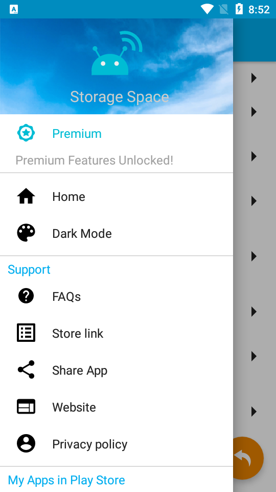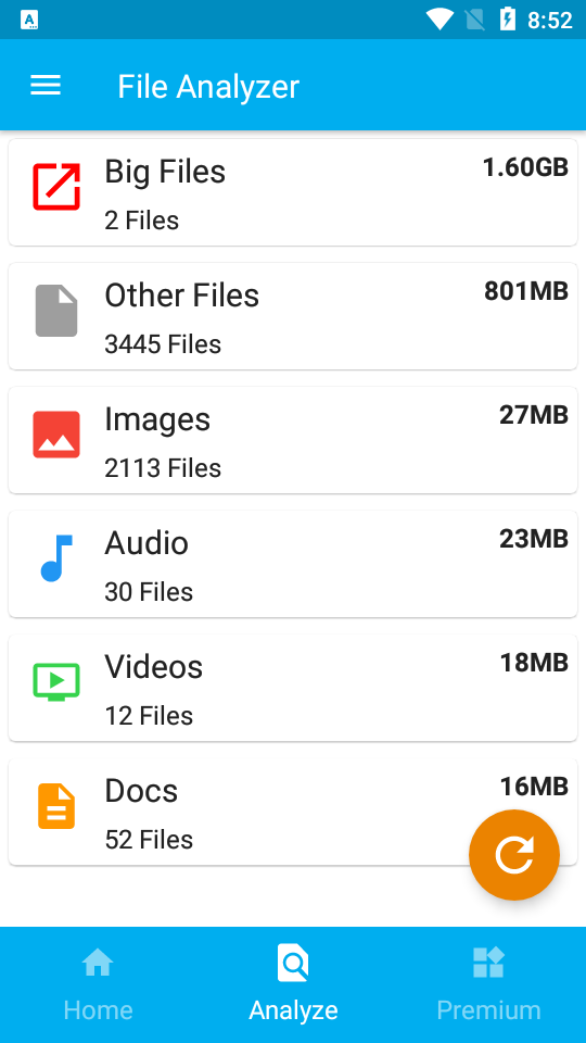 1、可以对安卓设备的存储空间的使用全面的显示,了解全部程序和文件的使用量。