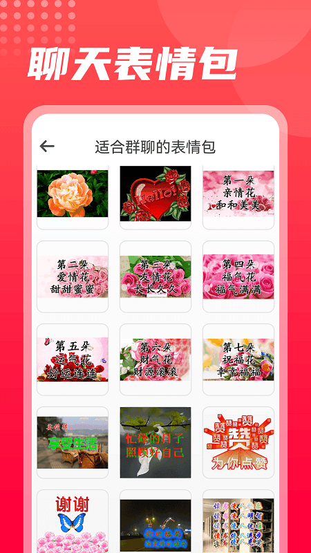 软件中收录了非常丰富的表情包数据内容,用户可以浏览软件中依据不同的分类来进行各种表情包的收集和使用,包括呼叫和群聊还有祝福等等。
