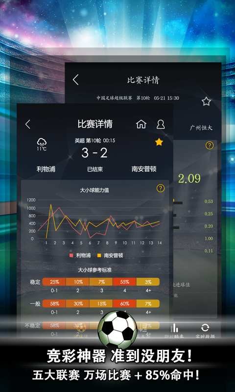 2、提供提供全方位赛前赛中比赛数据,多维度多层次全面复盘比赛,首选实时球市;