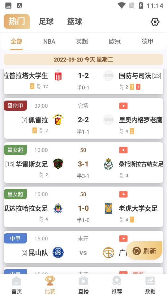 4、【动画直播】百分百还原赛场实时战况的动画直播,快速精准的战报集锦,掌握实时滚球数据,即时球赛比分,让你不错过任何一场你热爱的比赛