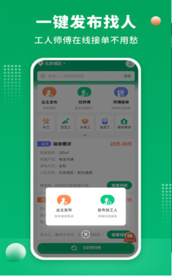 51装修师傅APP是一款功能非常专业的房屋装修软件,涵盖了家装、全屋定制、公装、设计等各种类型的装修单子,提供业主装修需求订单,业主真实预约,装修信息层层审核,真实可靠,为装修从业者搭建与业主沟通的桥梁。轻松谈单、施工直达!