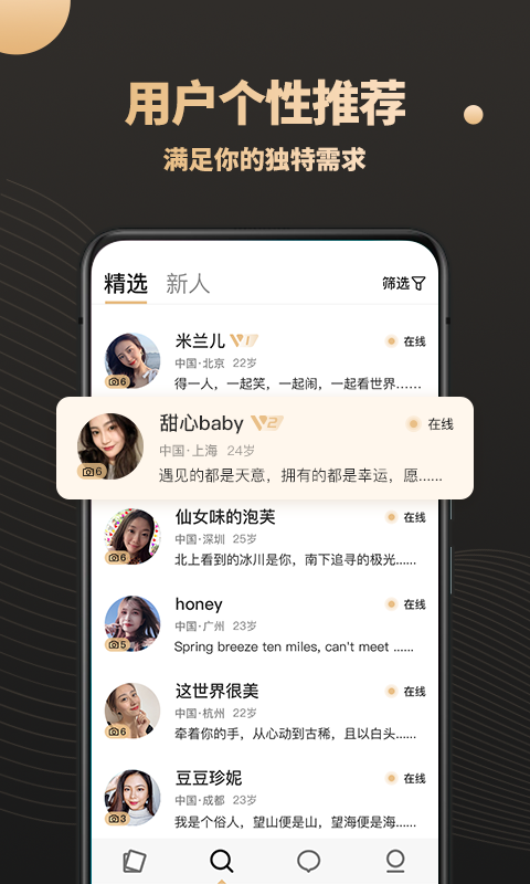 【精准推荐】铂金交友拥有全球优质用户数据库,轻松划一划就可以为你匹配适合你的那个Ta