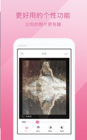2、每周更新紧跟潮流,大量在线素材可免费下载,包括分屏功能、灯光、相框、拼图背景等。
