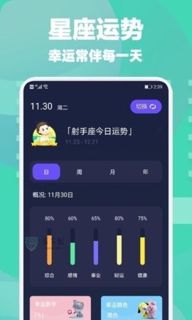 2、用户可以对自己八字运势每日、每月、每年运势及时播报;