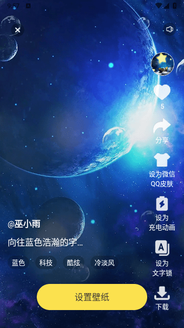 3、一键操作,直接下载动态壁纸到本地,设置成动态壁纸桌面。界面简洁清爽,操作简单方便。