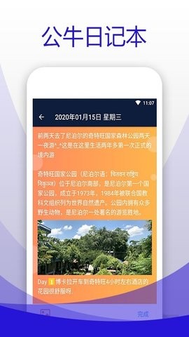 2、公牛日记本让用户更好的通过软件来每日定时提醒写日记的时间,可以记录生活中的点点滴滴。