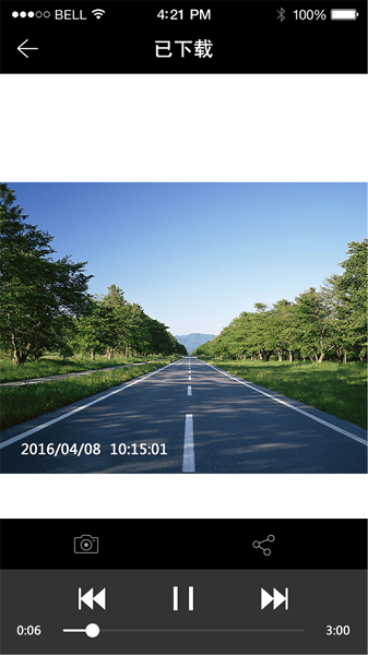 3、168行车记录仪便捷的无线访问,只需在APP指间滑动。