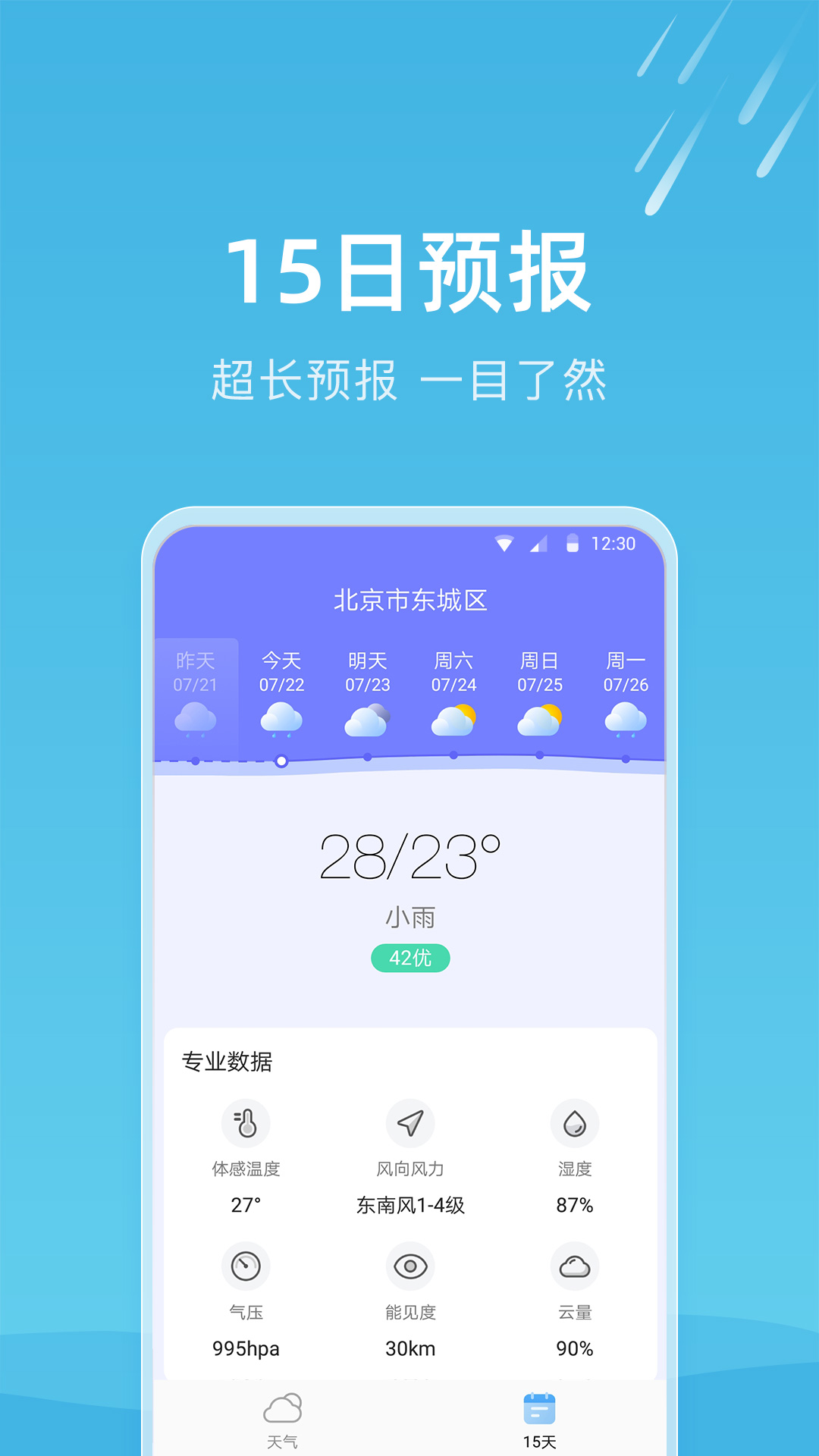 1、提供7天天气预报,用户可以提前了解未来一周内的天气情况,并可以及时采取相应的防护措施;