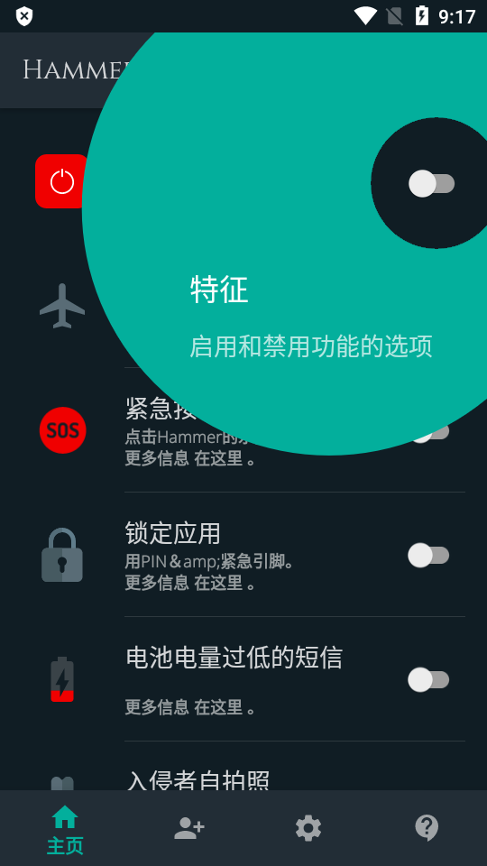 3、FAKEAIRPLANEMODE:如果有人试图启用飞行模式,Hammer将模拟飞行模式状态,但它会将实时位置、图片和音频发送到您的紧急联系人。