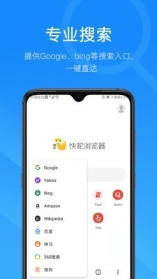 快驼浏览器app是一款能打开各种网站的浏览器软件,非常小众的一款上网神器,专业性非常强,支持多个搜索平台入口,信息内容是非常全面的,你想要的内容在这里都可以搜索到,各种海外视频你可以在这里查看,一键直达,使用体验是非常不错的,感兴趣的小伙伴们快来下载体验吧!