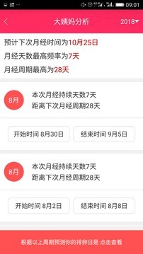 2、应用会自动计算出下次月经开始日期,并预测出下次月经期、排卵期和安全期。