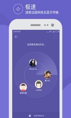 2、【极速传】极速瞬间闪传,传输速度是蓝牙的150倍,1分钟可传200张无压缩照片、80首MP3、3部高清电影或5款重度手游;