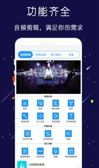 1、音频混合:可将多种格式的音频音乐进行混合;