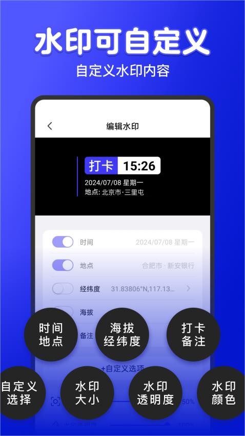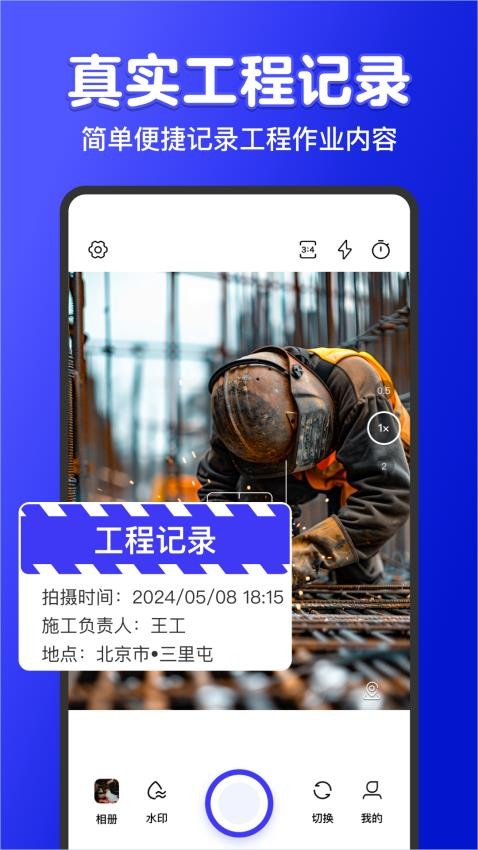 1、专业场景化水印模板,应用提供丰富的专属水印模板库,涵盖多种风格,适用于工程管理、考勤打卡、会议记录等多种工作场景。