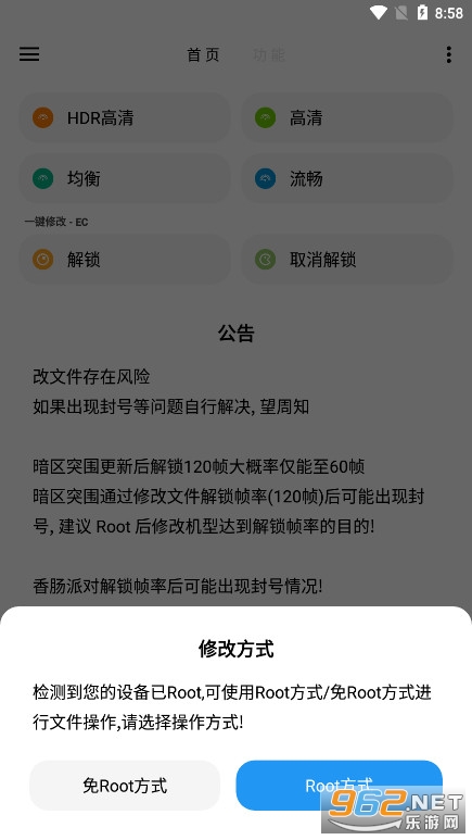 4.解锁画质功能,一.键解锁HDR高清,120帧率,畅想高画质、高帧率吧!