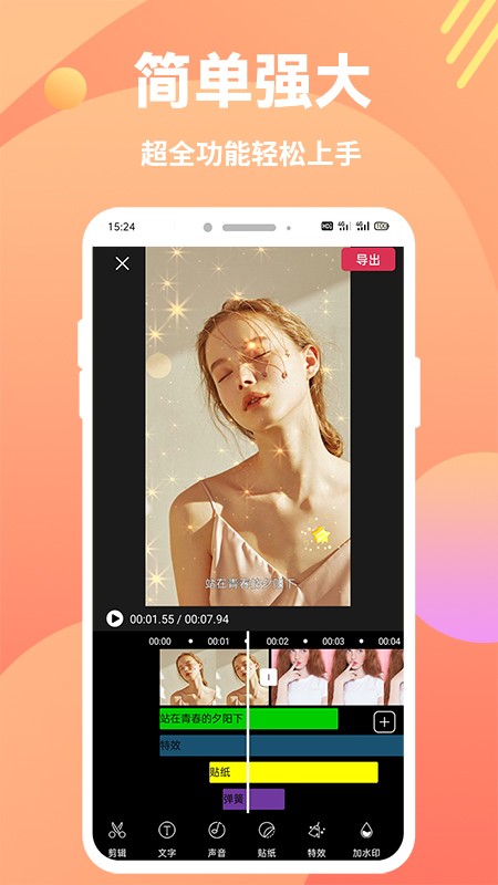 3、快映象剪辑能够对短视频附加外挂字幕。动画效果美颜实际效果提升配音等都很方便。