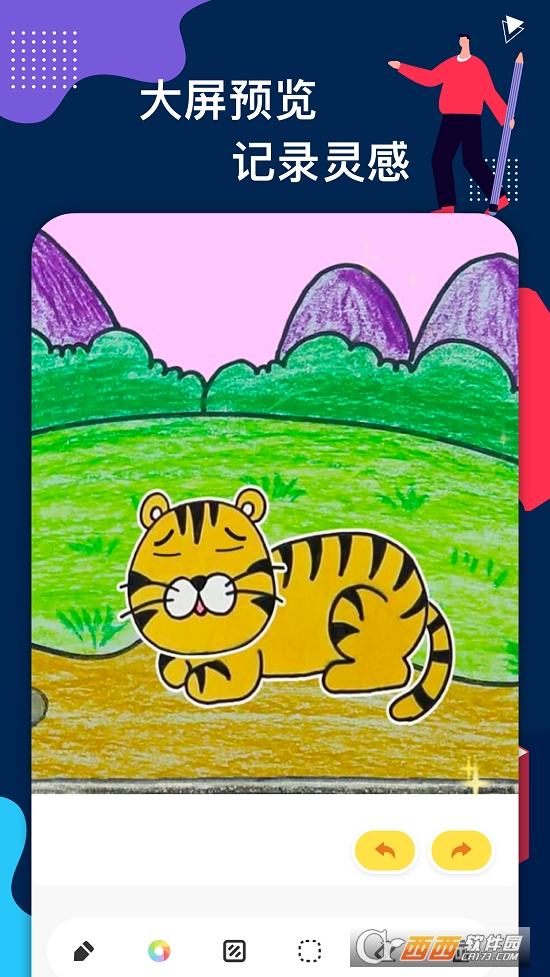 蛐蛐疯狂画板是一款非常好用方便的画板软件,你可以借用手机里的模板自由发挥,锻炼思维能力,开发智力,适合各个年龄阶段的用户,上手简单易懂,橡皮擦功能帮你轻松搞定错误,想要画画的小伙伴们来下载蛐蛐疯狂画板体验画画的快乐吧!