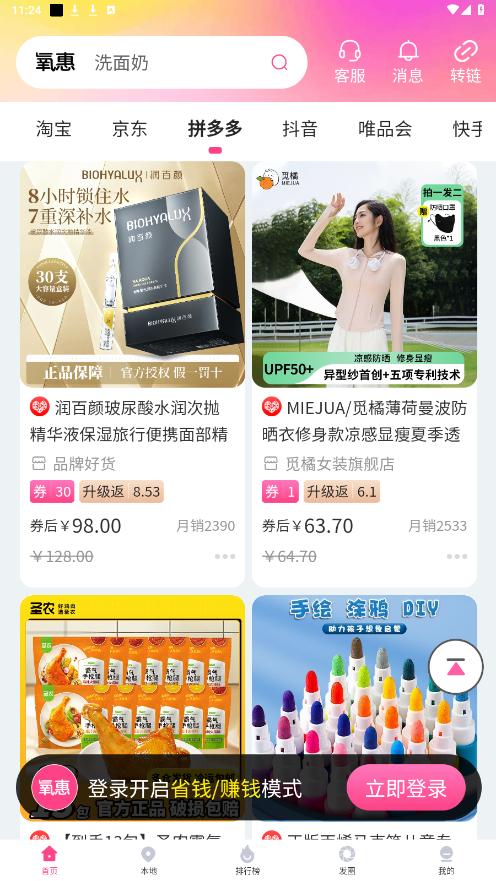 《氧惠APP》是您的全能生活助手!汇聚淘宝、天猫、京东等主流电商平台及生活服务优惠,一站式解决您的吃喝玩乐、衣食住行需求。无论您是想购物省钱,还是寻找生活服务优惠,氧惠都能提供丰富的选择和高额返利。让您的每一笔消费都物超所值,轻松享受品质生活。
