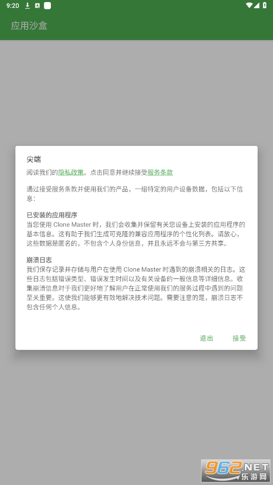 打开应用沙盒,点击同意相关协议