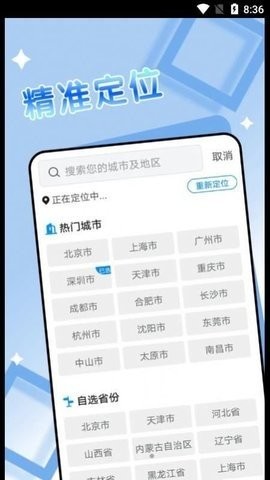 2、支持搜索其他城市地区,进行查看各个城市的天气预报情况
