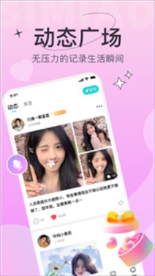 2、动态广场板块,让用户无压力的记录生活的瞬间,用户可以上传自己的动态,视频、照片和生活感悟。