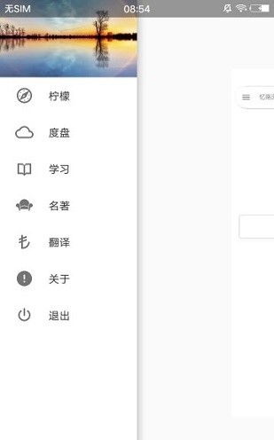 1、整个界面很简洁布局也很顺手,拥有柠檬、度盘、学习以及名著和翻译几个板块,你可以随意寻找自己需要使用的;
