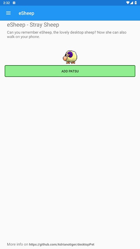 1、从本站下载电子绵羊esheep,安装后,可以看到整个界面非常的简单,只有一个按钮,就是ADD PATSU”