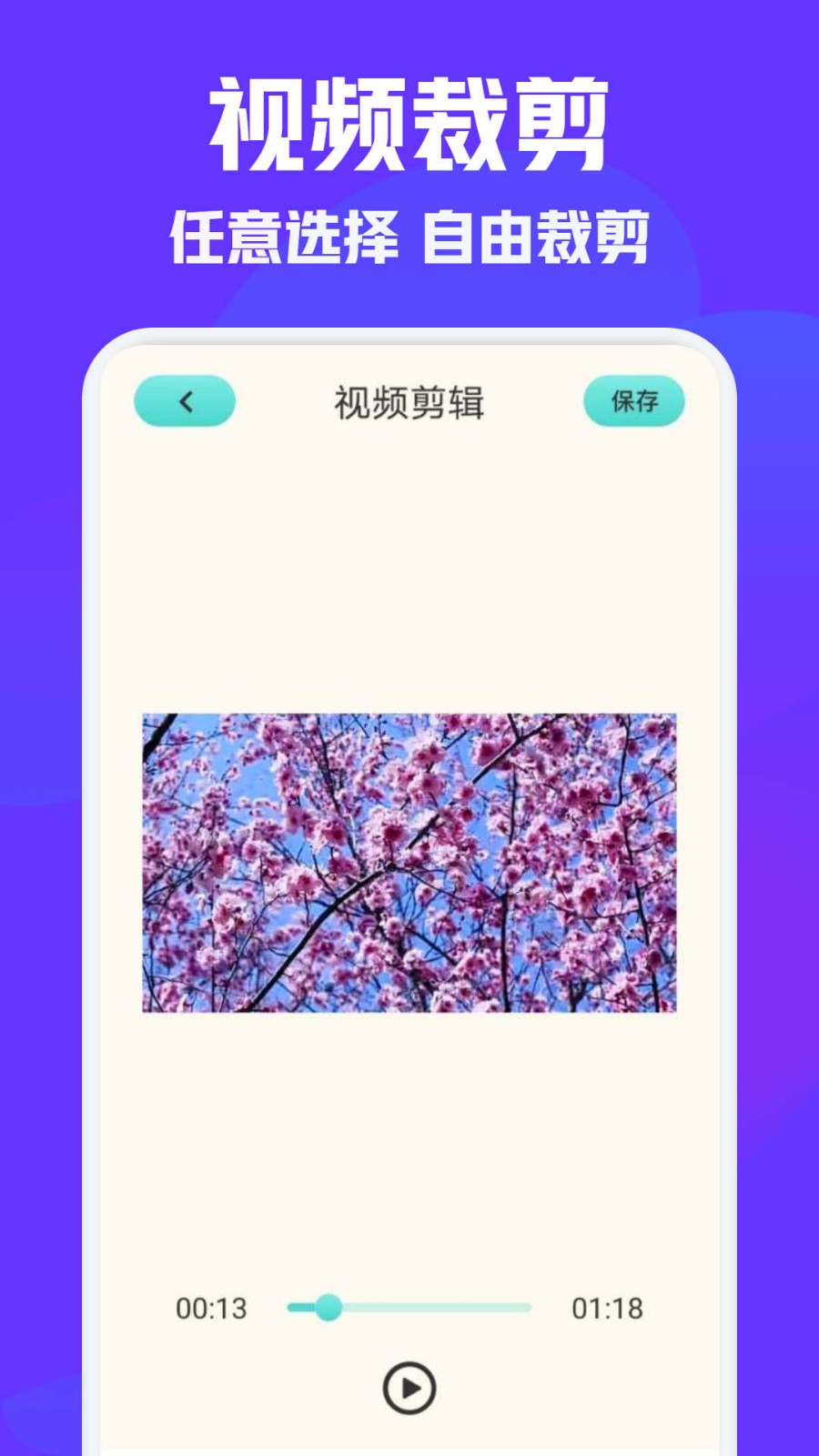 1、支持剪辑、拼接视频,编辑好的视频保存到本地。