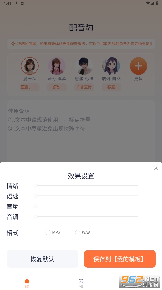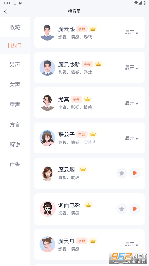 一款集合了众多专业配音员资源的手机应用,用户可以通过该应用快速找到合适的配音员为自己的作品录制声音。无论是电影配音、广告配音还是动画片配音,都能在豹配音找到最合适的声音。