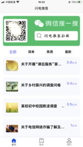 闪电推客是一款可以让你轻松赚零花钱的软件,这里拥有各种各样的问卷调查任务可以接去,完成任务就能获得奖励,不仅简单易上手,收益也是实时到账,无论是上班族、学生党还是在家带娃的宝妈都可以利用闲暇时光来赚取零花钱,有兴趣的朋友欢迎下载体验哦。