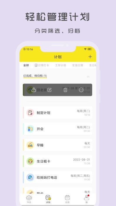 独特的打卡类型任务,卡片式设计,帮你自我激励,养成好习惯