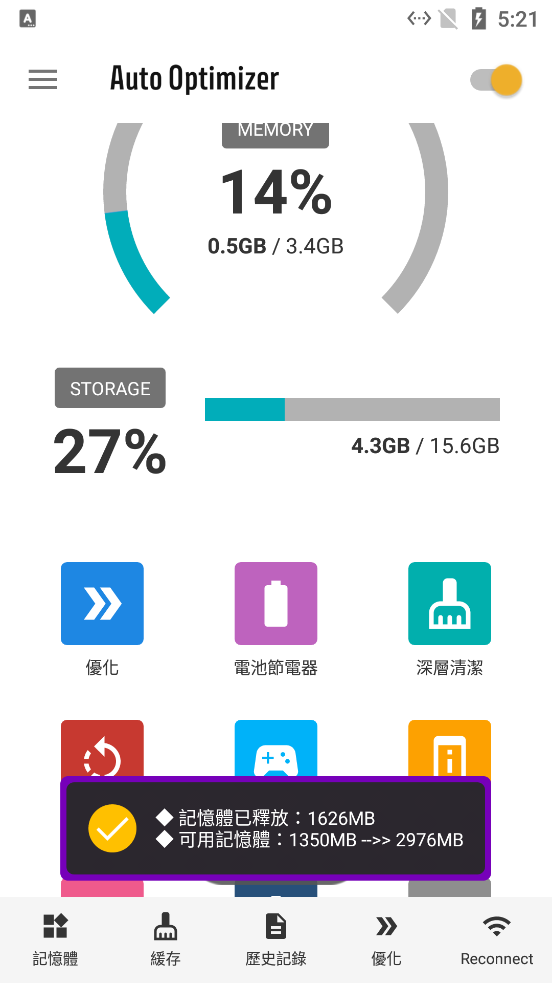 1、【自动优化】自动优化用户的设备,增加设备的功能,让用户拥有一个更好的体验。