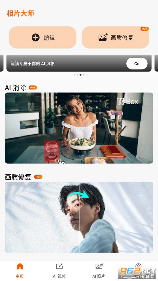 进入首页,选择需要的功能,比如ai删除
