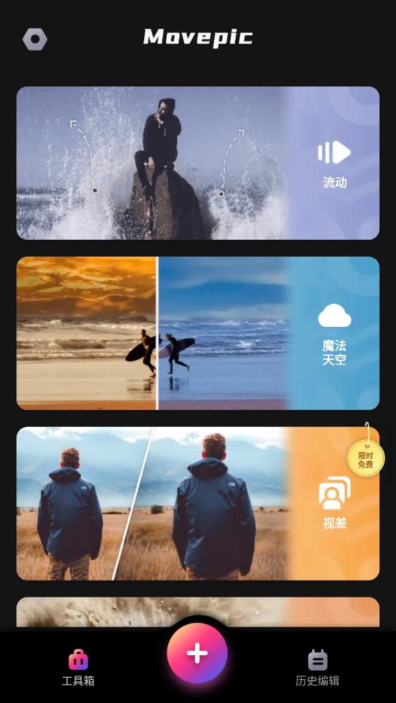 3、让静止的照片中的一切活过来,你可以让火焰飞舞,海浪翻滚,小河流淌.烟雾飘动。使用这些奇幻特效,你也可以是最优秀的那一个影片编辑大师。