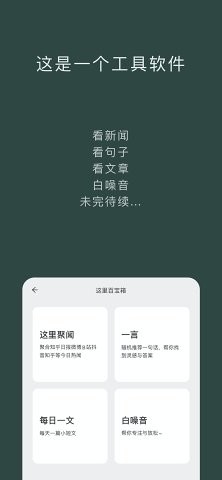 3、「这里」是一个工具软件你可以在这里刷知乎日报知乎B站抖音等今日热闻可以在这里看每日一文可以看一言可以听白噪音以后还可以做很多事。