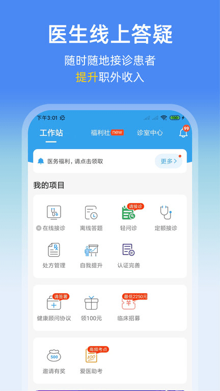 1. 在线接诊、离线答题、定额接诊优化,更多奖励在等你