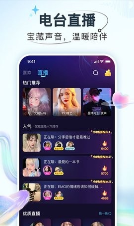 3、电台直播,宝藏声音,温暖陪伴,还有直播玩法都可以体验,任意就可以互动