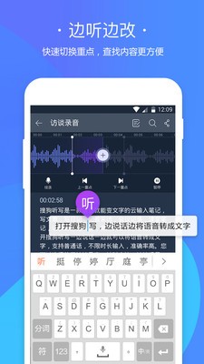搜狗听写是一款功能非常实用的掌上语音识别软件,让写作变得更加简单,采访,记录均可以用搜狗听写app语音功能来代替文字,支持普通话识别,不限录音时长,识别准确率高,大大的提高用户们的办公效率,让用户们可以节省更多的时间,还在这里大家可以将所需的资料分享给朋友,有需要的用户快来下载到手机上体验吧!