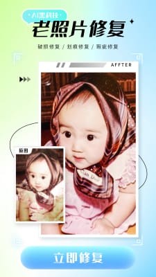 照片修复仪app是一款功能非常实用的可以轻松修复各种老照片的软件。一键维修非常方便。一键变老变年轻的时光机,还能帮你快速修复各种老照片,支持添加滤镜或修复照片清晰度,给黑白照片上色可以让你轻松修复手机上的各种照片。况且整体操作方式非常简单,所有功能都可以免费使用。对此有兴趣的你赶紧加入吧!