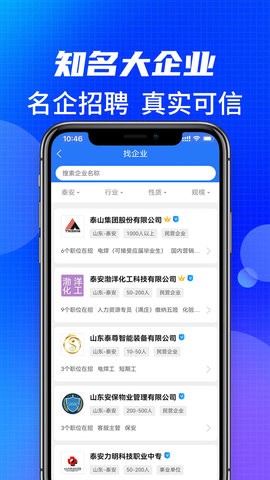 泰安直聘是一款非常好用的找工作平台,这里拥有超多的职位信息,无论是全职还是兼职全都有,并且每一个职业都拥有详细的介绍,更有专业的HR为你进行答疑解惑,让你轻松了解职位详情,除此之外,这里的所有职位都是真实靠谱的,大家完全可以放心的找工作哦。