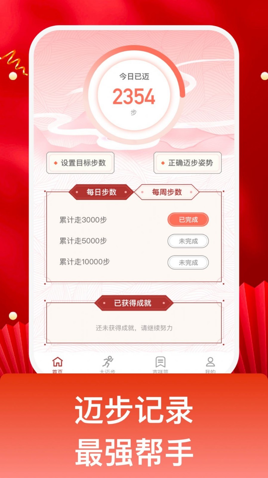 吉祥迈步app是一款功能非常实用的可以实时记录自己运动步数软件,每天都会自动记录步数信息,用户可以自由设置每日锻炼打卡步数,监控用户的在线锻炼打卡,并且累计到了一定的步数之后,还可以进行兑换奖励,真的是非常给力的,并养成每天运动的好习惯,感兴趣的用户快来下载吧!