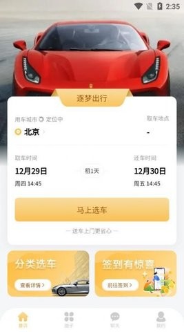 逐梦出行是一款非常好用的豪车租赁平台,这里拥有丰富多样的豪车任你选择,包含了法拉利、阿尔法·罗密欧、兰博基尼、布加迪、劳斯莱斯、玛莎拉蒂、宾利等全都可以在这里找到,并且所有的车辆租赁价格全透明,没有任何的隐藏收费,有需要的朋友欢迎下载体验哦。