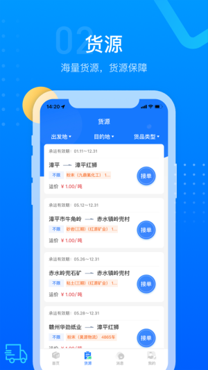 4、在货源大厅浏览实时发布的货运信息,根据运输需求筛选并承接合适的货物运输订单。