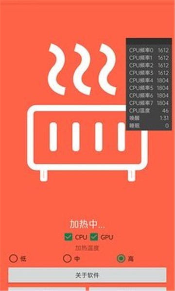 2、打开暖手宝应用后,首先选择CPU与GPU是否工作