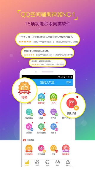 2、秒赞/秒评自己:一键秒赞自己、好友、明星,24小时完美流畅运行,0等待,0失败;