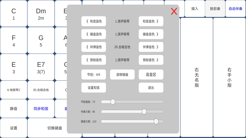 1、有自动伴奏、移调、改变音色、切换伴奏风格等等功能;