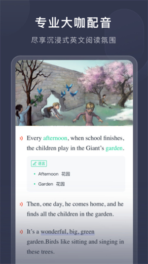 2、阅读训练系统集成书虫系列名著,支持广播剧演绎与生词难点解析功能,增强阅读理解能力。